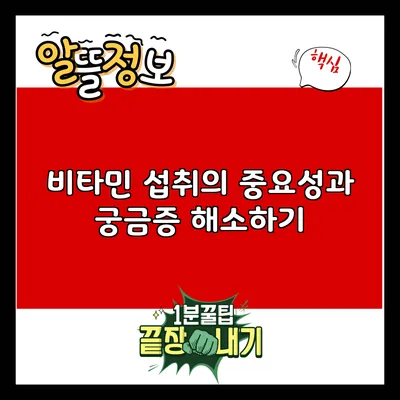 비타민 섭취는 건강한 삶을 위해 정말 필요해요. 다양한 비타민을 골고루 섭취함으로써 우리의 면역력과 에너지를 지켜나갈 수 있습니다. 오늘 이 글을 읽으며 비타민에 대한 궁금증이 조금은 해소되었기를 바라요. 비타민은 선택이 아닌 필수랍니다! 지금부터라도 균형 잡힌 식사를 통해 건강하게 비타민을 섭취해보세요.