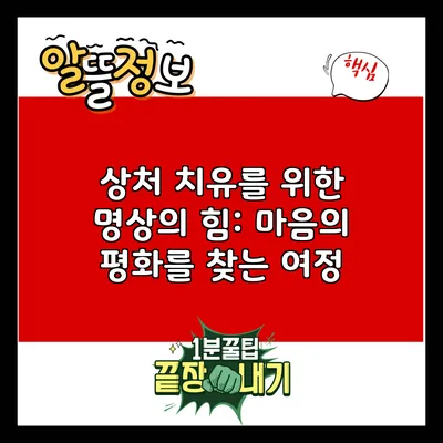명상은 여러 가지 방식으로 상처 치유에 도움을 줄 수 있어요. 연구에 따르면, 정기적인 명상은 스트레스 수치를 낮추고, 심리적 안정을 증진시키는 데 효과적이에요.