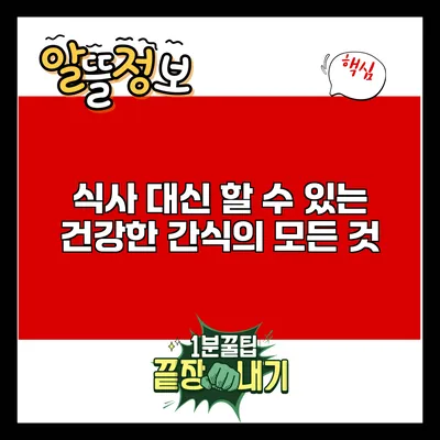 식사 대신 건강한 간식을 선택하는 것은 여러분의 건강을 지키고 에너지를 높이는 좋은 방법이에요. 입맛과 영양 모두를 만족시킬 수 있는 다양한 간식을 통해 여러분의 식단을 더욱 건강하게 만드시길 바랍니다. 바쁜 일상 속에서도 건강을 챙길 수 있는 간단한 방법, 오늘부터 시작해 보세요!