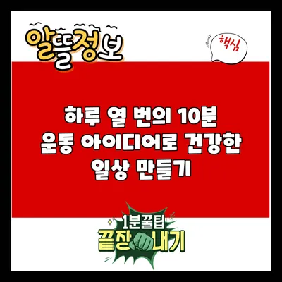 운동할 시간이 없다고 생각하면 금세 포기하게 되죠. 하지만, 하루 열 번의 10분 운동은 여러분의 건강을 개선할 수 있는 좋은 방법이에요. 이렇게 적은 시간만 투자해도 몸의 변화를 느낄 수 있어요. 어떻게 하면 좋을까요? 이 글에서는 하루 10분씩 짧게 할 수 있는 운동 아이디어를 소개할게요.